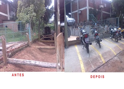Esta é uma das melhorias que estamos fazendo na base de Frederico Westphalen. Onde era um depósito de postes de madeira usados, transformamos em um estacionamento de motos e bicicletas, que era uma reivindicação antiga dos funcionários.
