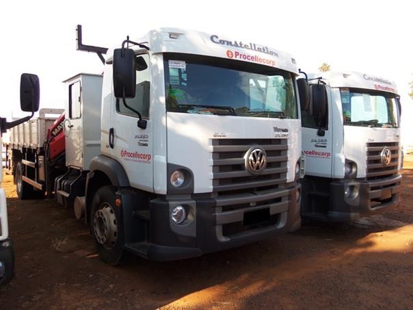 A Procellecorp continua modernizando sua frota, recentemente foram adquiridos caminhões Volkswagen 24.280 CRM 6X2 . Na imagem, dois dos novos veículos.